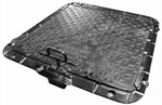 Właz kwadratowy DK 800x800 H100 żeliwny COFUNCO, ARCHILIFT 3193 z siłownikiem, pokrywa na zawiasie, wkładka amortyzująca, max. otwarcie pokrywy do 110", blokada i możliwość wyjęcia pokrywy w 90"