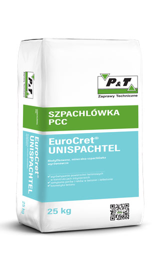 Szpachla cementowa typu PCC do kosmetyki betonu w inżynierii komunikacyjnej i konstrukcjach żelbetowych, wykorzystywana do wyrównywania powierzchni betonowych, zamykania porów i raków w betonie, wygładzania powierzchni pod powłoki malarskie.