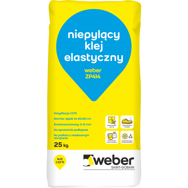 Zaprawa klejąca weber ZP414 została wyprodukowana w innowacyjnej technologii redukującej pylenie podczas przesypywania i mieszania, dlatego jest szczególnie polecana do prowadzenia prac w pomieszczeniach zamkniętych.