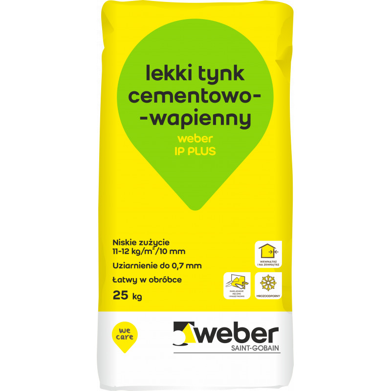 Tynk weber IP PLUS jest lekkim, cementowo-wapiennym tynkiem podkładowym pod kolejne warstwy wykończeniowe w budynkach mieszkalnych oraz w obiektach handlowych, przemysłowych oraz użyteczności publicznej.