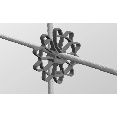 Dystans punktowy do pionowych zbrojeń o profilowanym zacisku, pozwalającym stosować go na prętach różnej grubości. Gwarantuje minimalny kontakt z szalunkiem i doskonały przepływ betonu. Do stosowania w wytwórniach prefabrykatów i bezpośrednio na budowie.