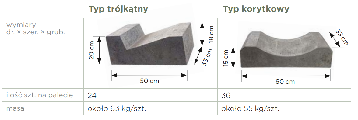 Płyty ściekowe typu korytkowego mają za zadanie odprowadzanie nadmiaru wody deszczowej na pograniczu chodników i trawników. Produkt jest odporny na szkodliwe działanie warunków atmosferycznych i cechuje się wysoką trwałością.