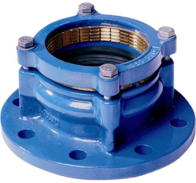 Stosowany do łączenia rur PVC, PE z kołnierzem armatury wodociągowej. Posiada mosiężne zabezpieczenie przed wysunięciem rury z łącznika.