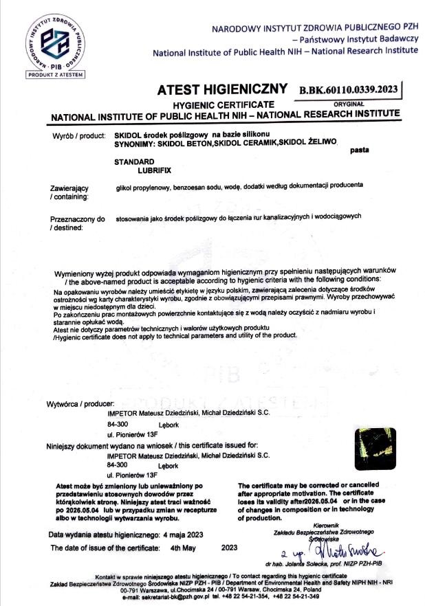 Profesjonalny środek poślizgowy KELLER do rur ma formę białego kremu opartego na bazie silikonu. Zwiększa poślizg przy łączeniu rur PVC i ułatwia montaż. Jego bardzo wysoka mrozoodporność pozwala nie tylko na stosowanie w bardzo niskich temperaturach, ale również na składowanie produktu pod wiatami lub w nieogrzewanych magazynach. Ma to również niebagatelne znaczenie w transporcie na duże odległości w ujemnych temperaturach. W temperaturach podwyższonych lub obniżonych środek poślizgowy KELLER nie zmienia swojej konsystencji. Posiada atest PZH i może być stosowany przy wodociągach.