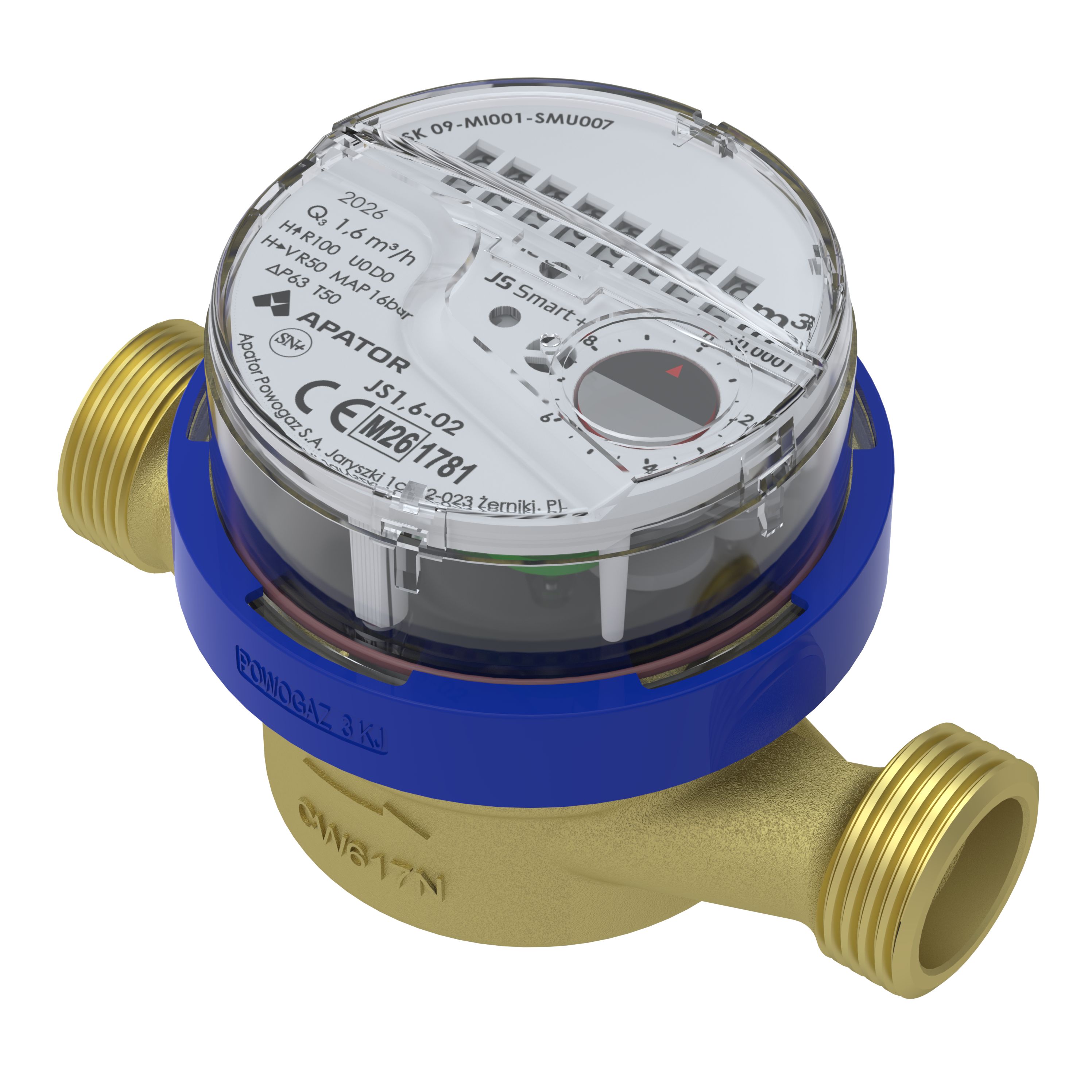 Wodomierz DN 15/110 R100 zimna woda, Q=1,6 m3/h, Apator JS 1,6-02 typ Smart+, L-110 mm, gwint 3/4"