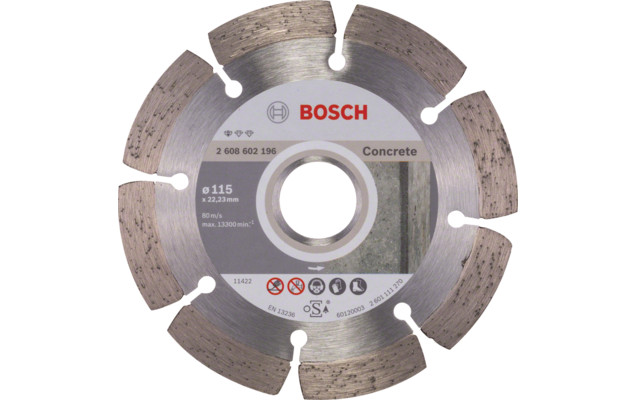 Diamentowa tarcza tnąca Standard for Concrete umożliwia skuteczne cięcie w betonie. Zoptymalizowana osnowa diamentowa zapewnia solidne rezultaty dzięki wysokiej jakości wykonania tarczy. O utrzymanie tych standardów dba znajdujące się w Szwajcarii centrum kompetencyjne Bosch w zakresie technik diamentowych. Tarcza przystosowana jest do cięcia betonu.
