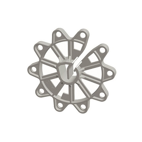 Dystans punktowy do pionowych zbrojeń o profilowanym zacisku, pozwalającym stosować go na prętach różnej grubości.