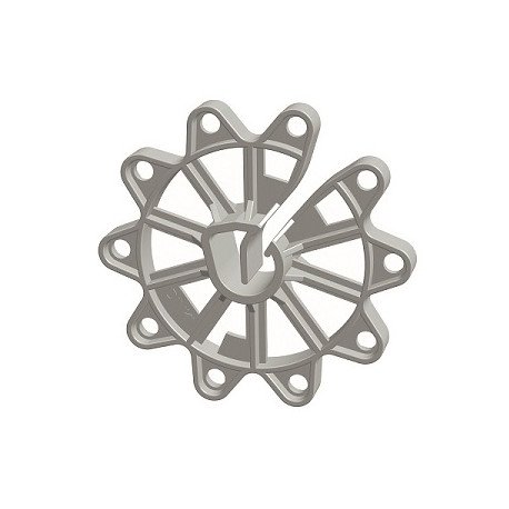 Dystans punktowy do pionowych zbrojeń o profilowanym zacisku, pozwalającym stosować go na prętach różnej grubości.