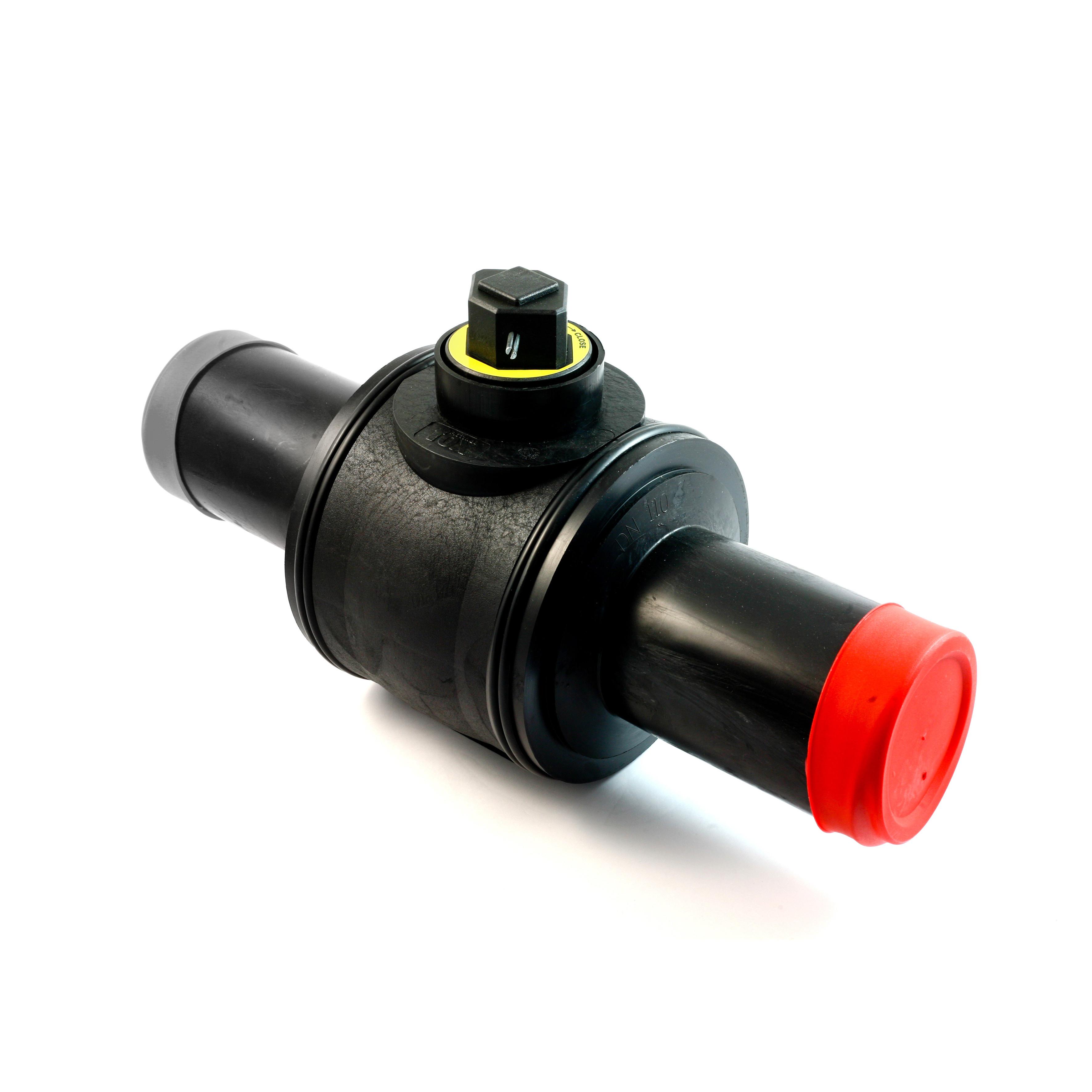 Zawór wykonany jest w całości z PE 100, nie zawiera elementów stalowych. Otwarcie lub zamknięcie zaworu następuje na podstawie obrotu głowicy zaworu o 90°. Zawór może pracować w pozycji częściowo otwartej.