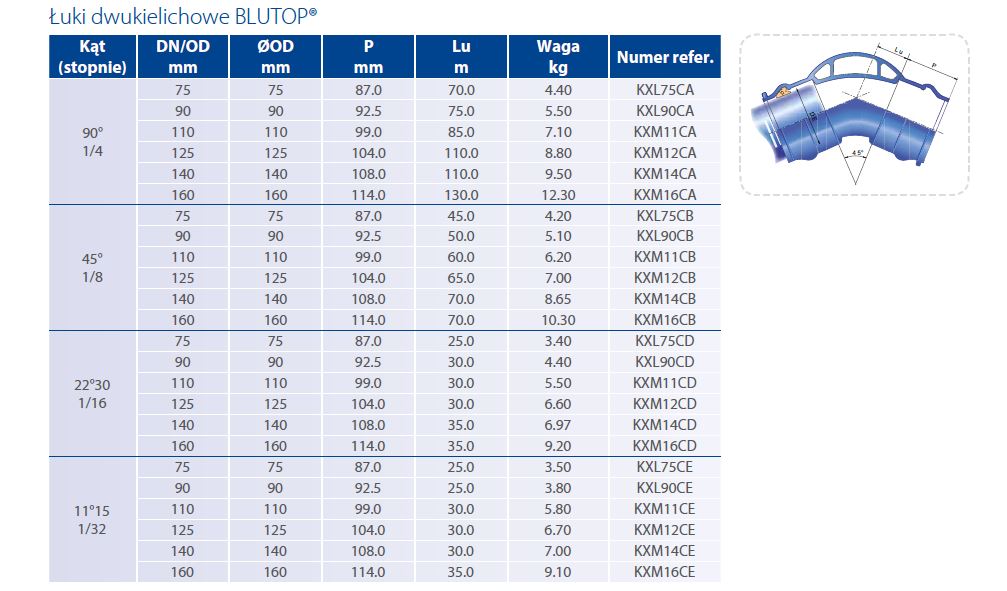 Rury i kształtki z żeliwa sferoidalnego w systemie BLUTOP® dostępne są w średnicach DN/OD 75 do DN/OD 160 mm.