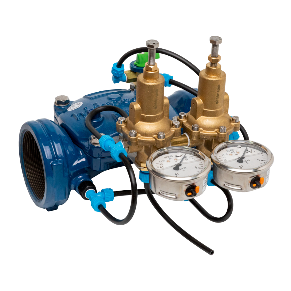 Zawór uniemożliwiający rozchód wody za zaworem, jeśli ciśnienie na wejściu, spadnie poniżej ustalonej na pilocie wartości. Stosowany np. za odgałęzieniem przeciwpożarowym – do zabezpieczenia odpowiedniego ciśnienia w rurociągu p.poż, poprzez odcięcie wody bytowej. W normalnych warunkach pracy – redukuje i stabilizuje ciśnienie wody bytowej. Korpus wykonany z żeliwa sferoidalnego GJS-400, zwieradło, sprężyna i prowadnica trzpienia ze stali nierdzewnej AISI 304, membrana: NBR wzmacniany nylonem. Dostępny w wersji z przyłączami gwintowanymi lub kołnierzowymi.