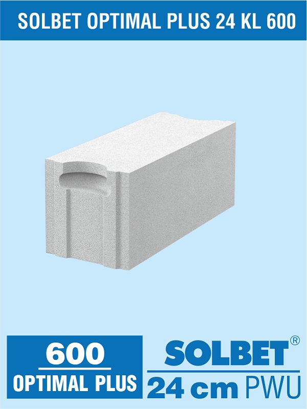 Beton komórkowy 24 cm SOLBET 590x240x240 P+W odm. 600, 48 szt./pal., 7 szt./m2 Optimal Plus