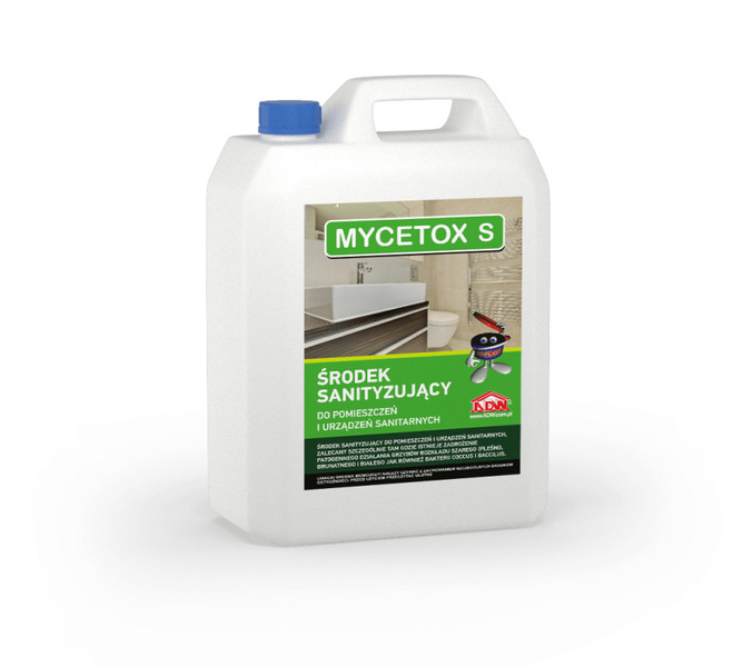 Preparat MYCETOX S' w swoim składzie zawiera substancję czynna w postaci czterorzędowej soli amoniowej, zalecanej szczególnie tam, gdzie występuje zagrożenie patogennego działania grzybów rozkładu szarego (pleśni), brunatnego i białego jak również bakterii typu Coccus i Baccilus.