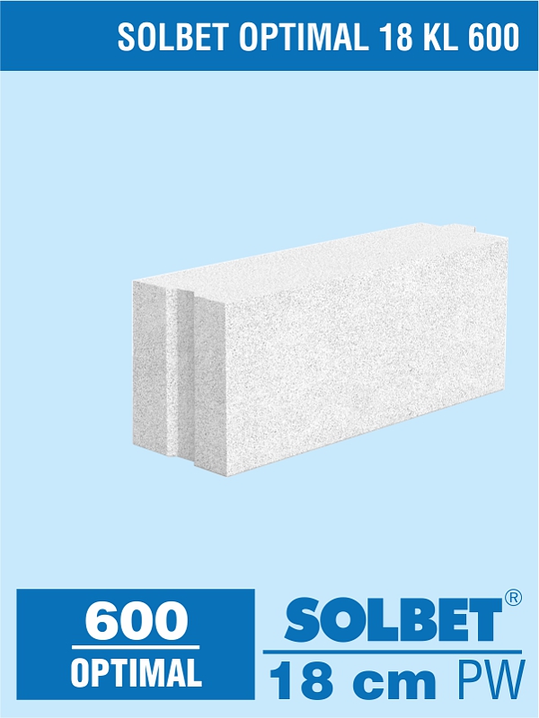 Beton komórkowy 18 cm SOLBET 590x180x240 odm. 600, 64 szt./pal., 7 szt./m2, Optimal