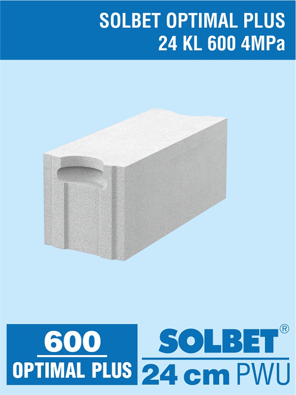 Beton komórkowy 24 cm SOLBET 590x240x240 P+W odm. 600 4 MPa, 48 szt./pal., 7 szt./m2 Optimal Plus 4