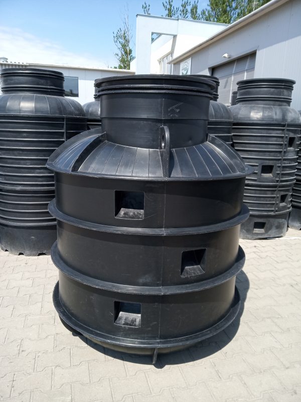 Studnia wodomierzowa PE DN1200 H=1,56 m ROTO TANK, bez przejść; pokrywa DN600 izolowana, stopnie, podpora PEHD pod konsolę wodomierzową