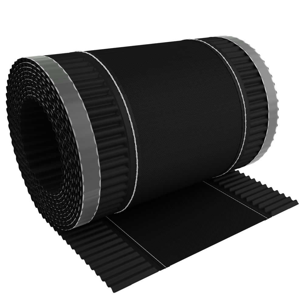 Paroprzepuszczalna taśma kalenicowa wykonana z dwóch pasów plisowanego aluminium oraz wysokiej jakości włókniny polipropylenowej.