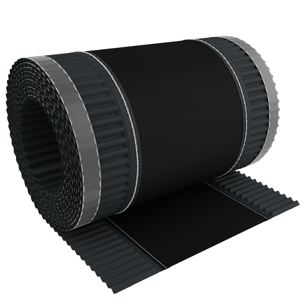 Paroprzepuszczalna taśma kalenicowa wykonana z dwóch pasów plisowanego aluminium oraz wysokiej jakości włókniny polipropylenowej.