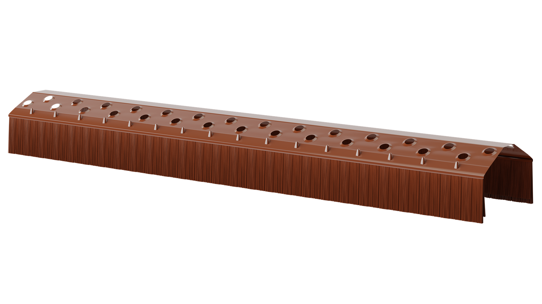 Duże, specjalnie wyprofilowane otwory gwarantują efektywną wentylację, a gęste włosie, dopasowujące się do krzywizny dachówki chronią przed nawiewaniem wody i śniegu.