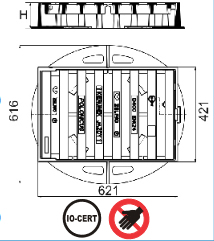 Wpust uliczny E-600, H115 620x420 pełnokołnierzowy z zawiasem i zatrzaskiem