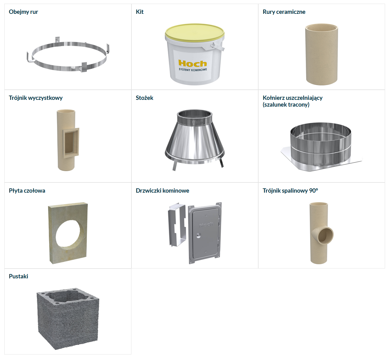 Dla systemu kominowego HOCH Uniwersal w skład zestawu podstawowego wchodzą: