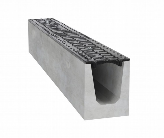 Kanał B125 BIELBET TC130 betonowy, ruszt żeliwny, z odpływem H=16cm L=100cm