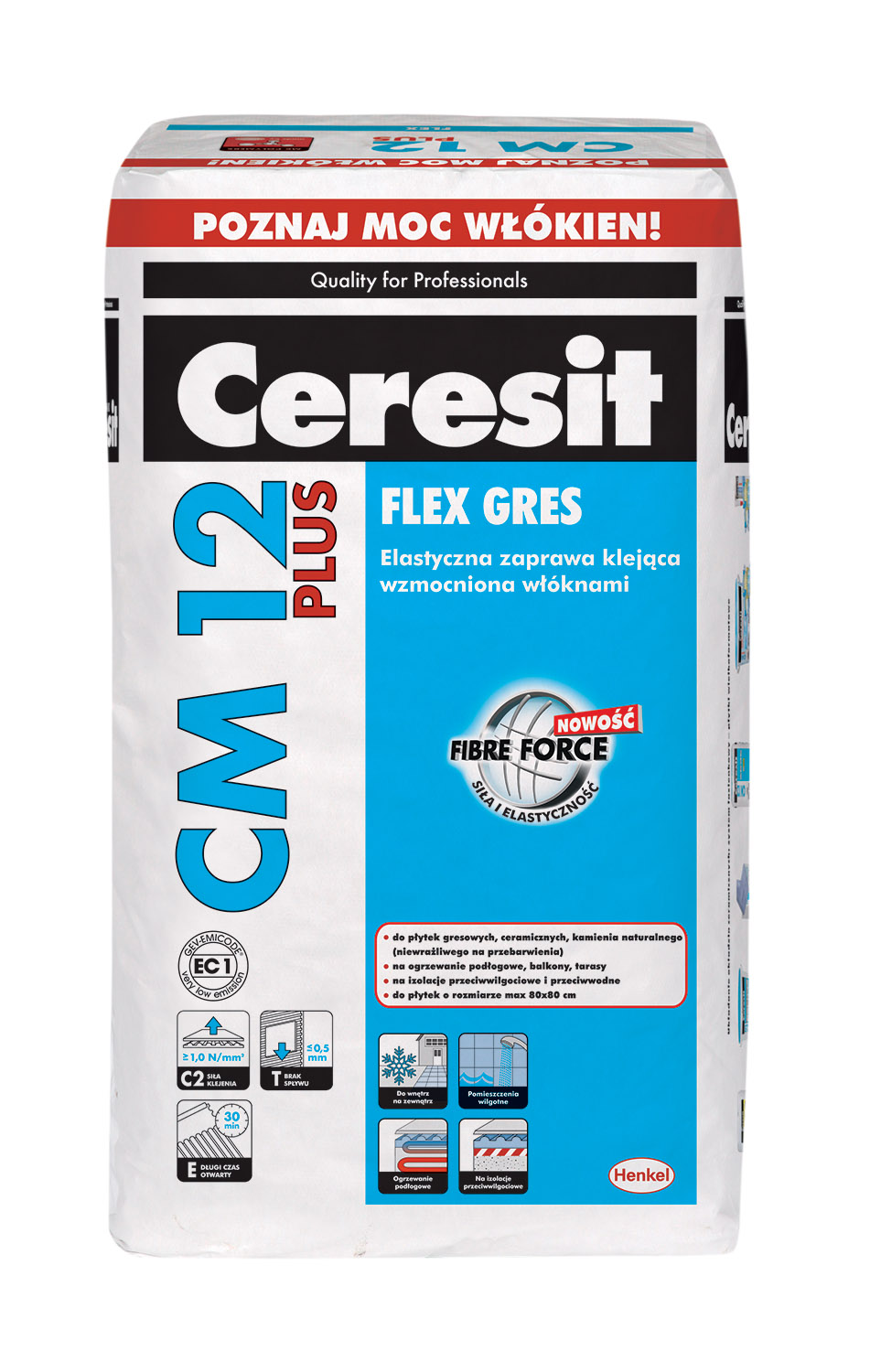Ceresit CM 12 PLUS, 25 kg, elastyczny klej do dużych i małych płytek wzmocniony włóknami Fibre Force