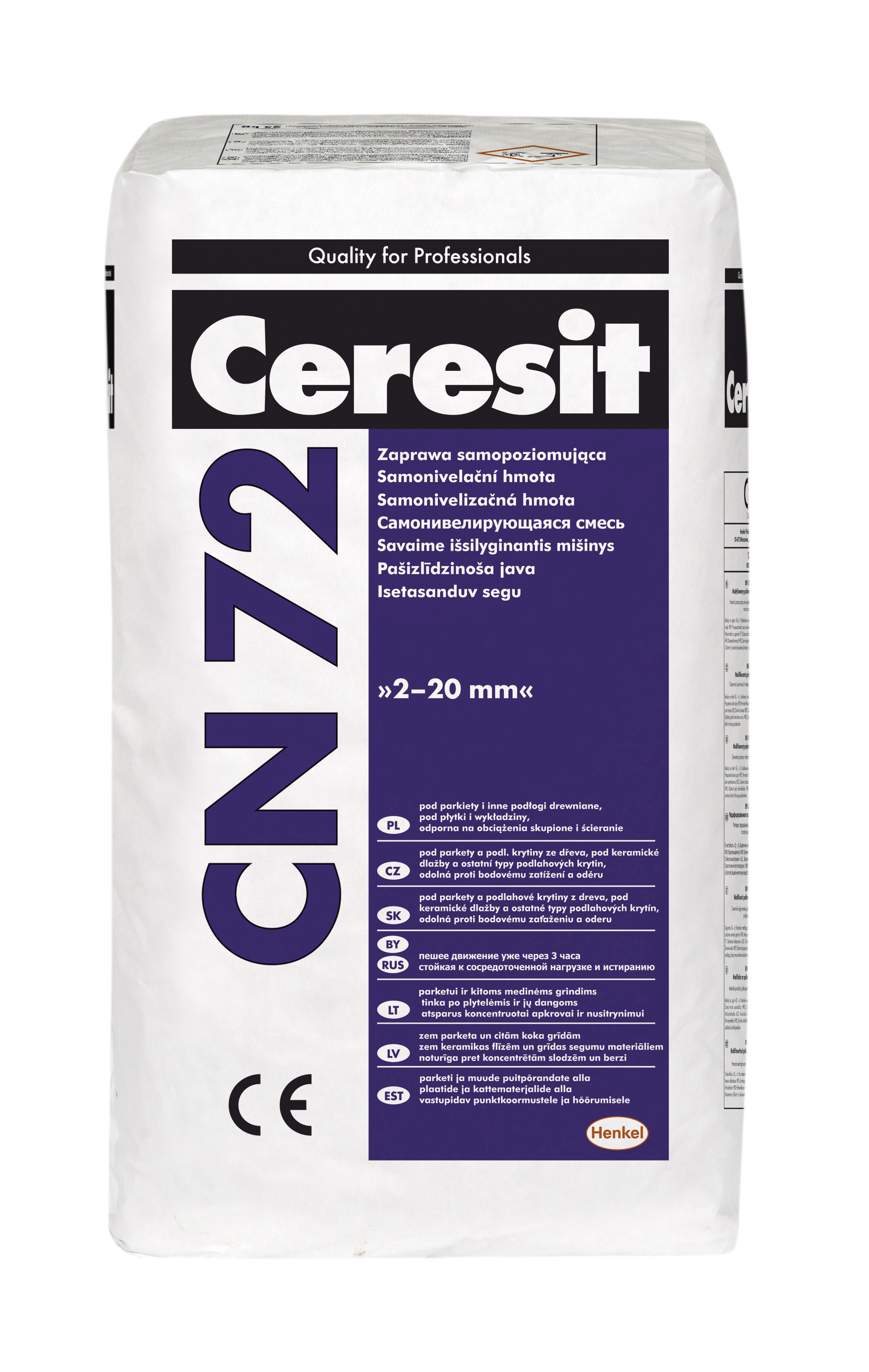 Ceresit CN 72 NIVEL FAST, 25 kg, samoczynnie wygładzająca się, łatwa w stosowaniu zaprawa do wyrównywania podłoża w zakresie grubości od 1 do 20 mm, która umożliwia ruch pieszy już po około 3 godzinach od aplikacji