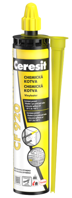 Ceresit CF 920, 420 ml, kotwa chemiczna winyloestrowa na bazie żywicy reaktywnej, nie zawierająca styrenu, do kotwienia stalowych kołków, prętów, śrub i zakotwień w różnych podłożach (beton, mur, kamień naturalny)