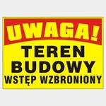 Tablica ostrzegawcza TEREN BUDOWY WSTĘP WZBRONIONY